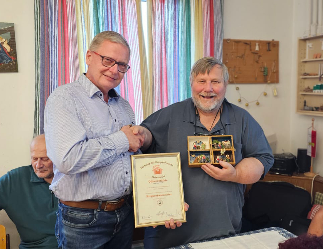 Im Mai besuchten Gilbert Mathie den Krippenbaumeister-Lehrgang in der Landeskrippenbauschule Oberösterreich in Geboltskirchen. Gilbert konnte den Krippenbaukurs 4 - dem Krippenbaumeister erfolgreich abschließen