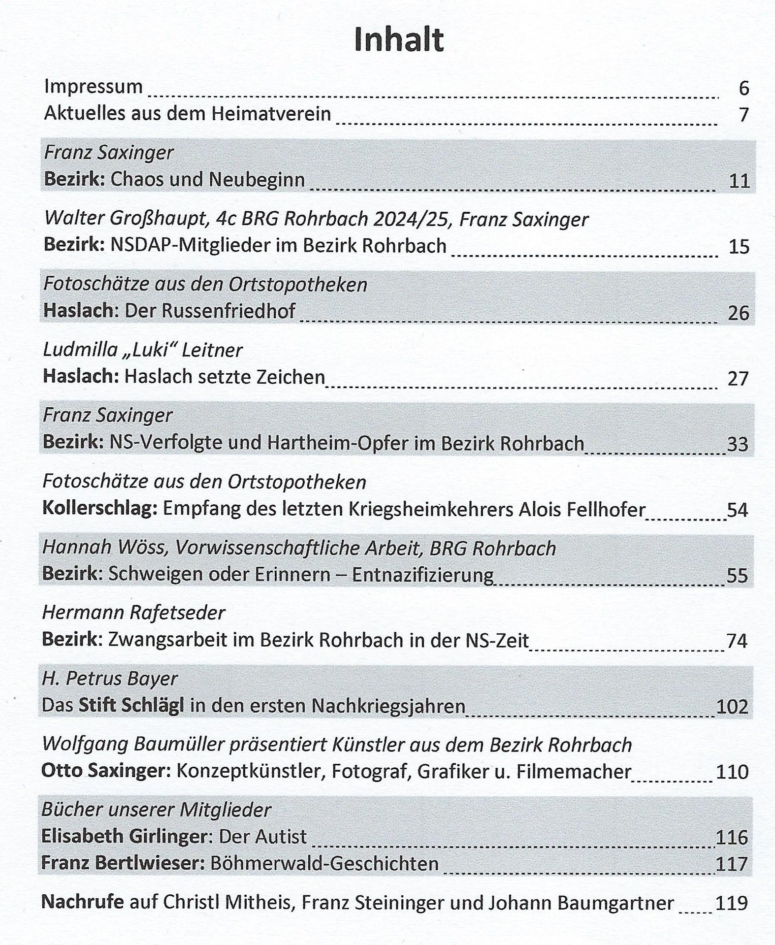 | Kultur und Geschichte im Bezirk Rohrbach Nr. 36 | € 12,00 | Heimatverein des Bezirkes Rohrbach | Heft_36_Inhalt_Screenshot... |