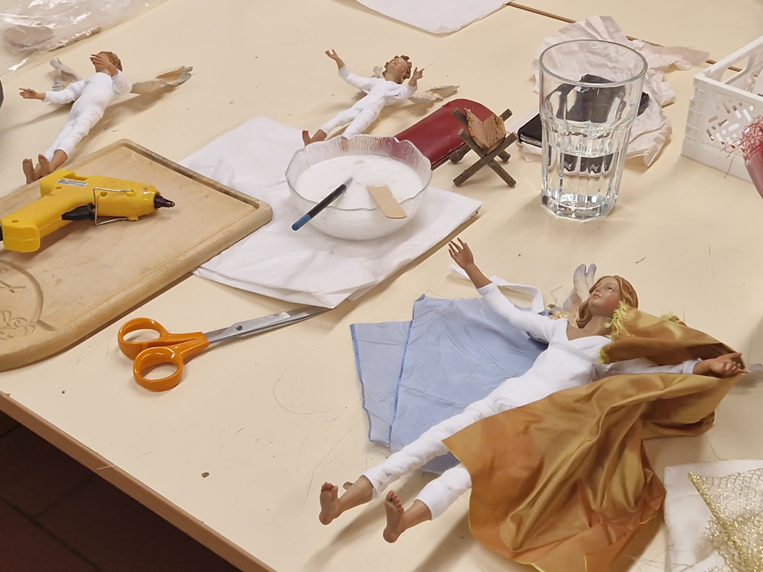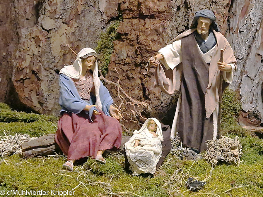Sämtliche Körperteile der Figuren sind aus Holz (Kopf, Körper, Hände, Füße, Körper) gefertigt, mit Draht verbunden und somit beweglich. Den Krippenfiguren wird vom Kursteilnehmer durch das Biegen in die gewünschte Körperhaltung gewissermaßen Leben eingehaucht.